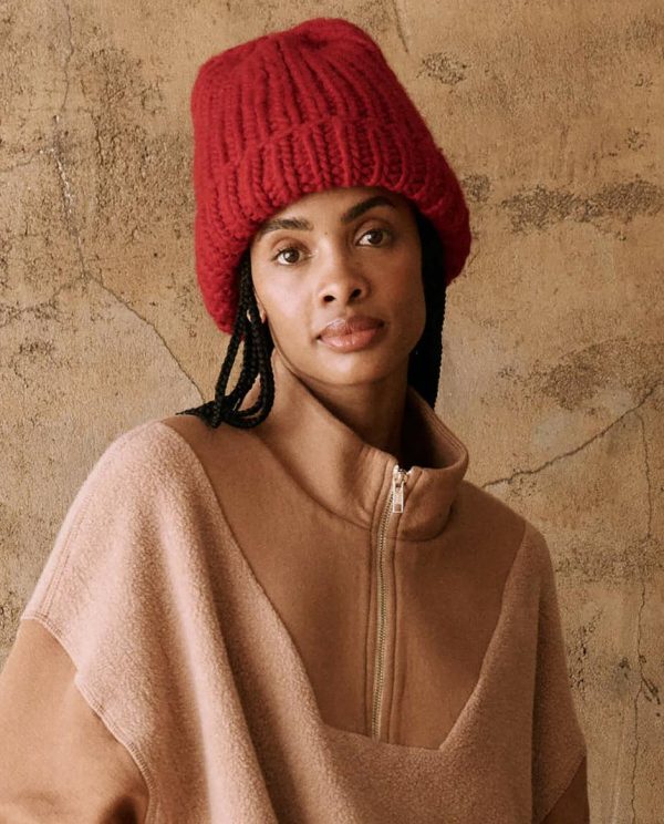 Inspired by beanies of the 1970s made for the cold winter snow days, this handknit cap is made of 100% Merino Wool and intended to look oversized and slouchy.