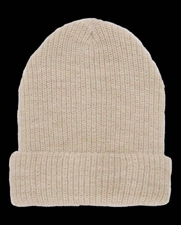 This beanie is a recreation of a vintage knit cap from the 70’s. Knit in LA from a soft merino alpaca blend that is spun into a soft textured rib stitch, the yarn is undyed, keeping it natural color in three rich and neutral shades.