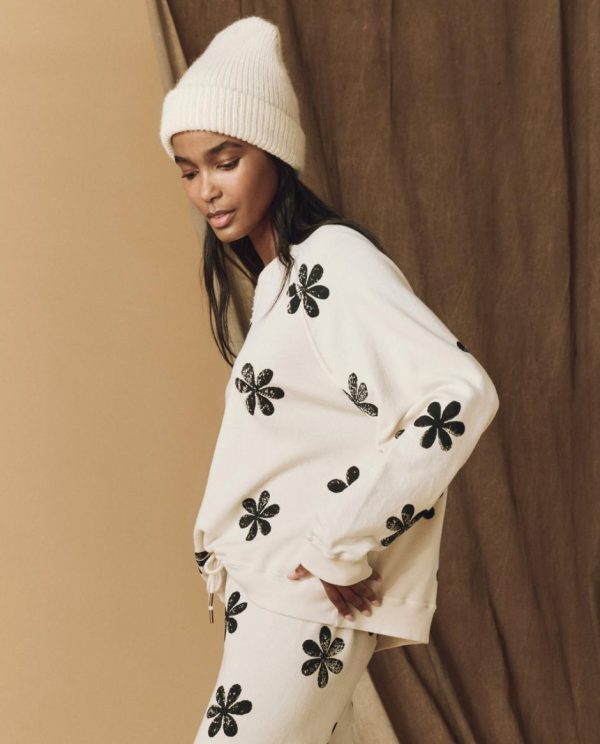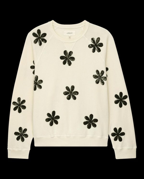 Women Novelty Tees & Sweats | The Great. The Hand Stamped Slouch Sweatshirt. Washed White With Black Daisy