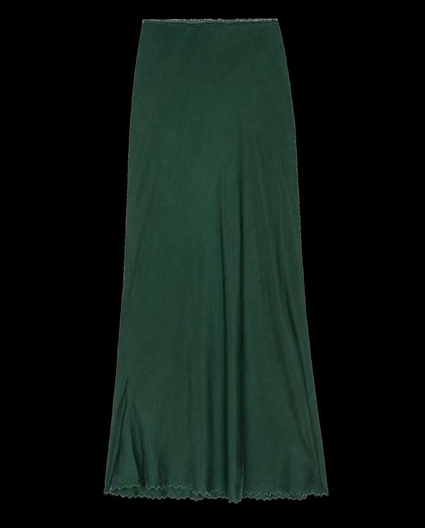 The Seabank Skirt is a bias-cut piece that drapes gracefully over the body. Its slim fit, enhanced by delicate elastane at the waistband, boasts a dainty scallop hem adorned with intricate embroidery thread, embodying the charm of 1930s dressing.
