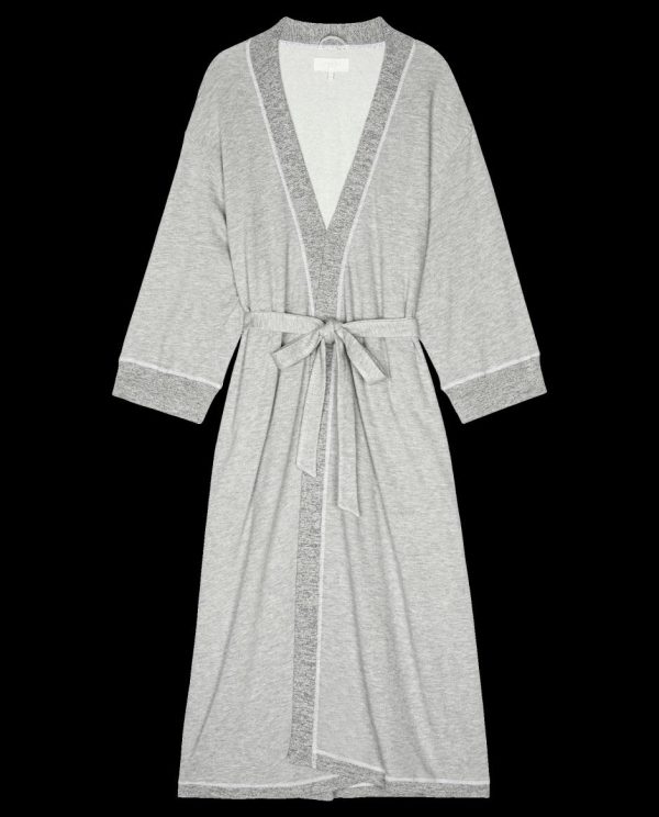 This robe is made from an ultra-soft cotton reminiscent of your favorite vintage sweatshirt. It features an extra-long length, relaxed fit, shawl collar, wide, slightly shortened sleeves and a secure waist tie.