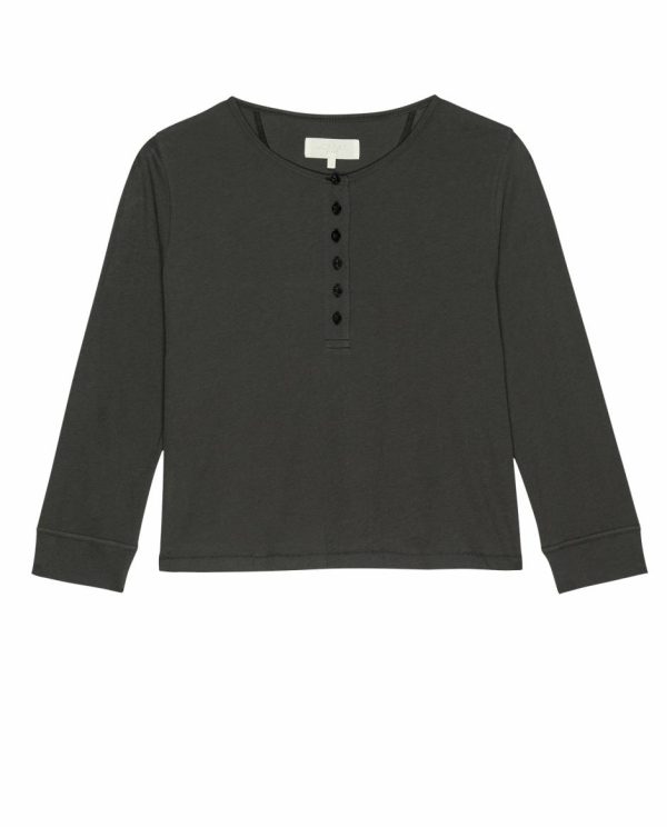 Crafted from cozy jersey and inspired by an early 1900s men’s piece, we tweaked the proportions for a more flattering fit. This boxy, easy fit has a longer button placket.