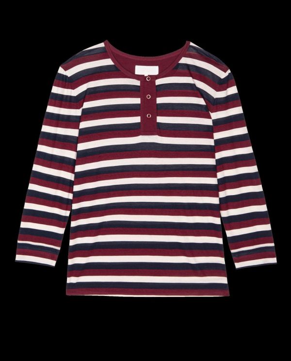Inspired by an early 1900s men’s sleep shirt, this supersoft henley is crafted from cozy jersey with tweaked proportions for a more flattering fit. It boasts a small button placket and shorter length sleeves.